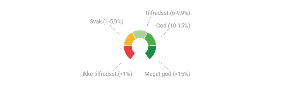 Gjennomsnittlig totalkapitalrentabilitet for norske selskaper er nesten 10 %, men det er store variasjoner mellom bransjer. Selskapet Proff opererer med følgende skala:
